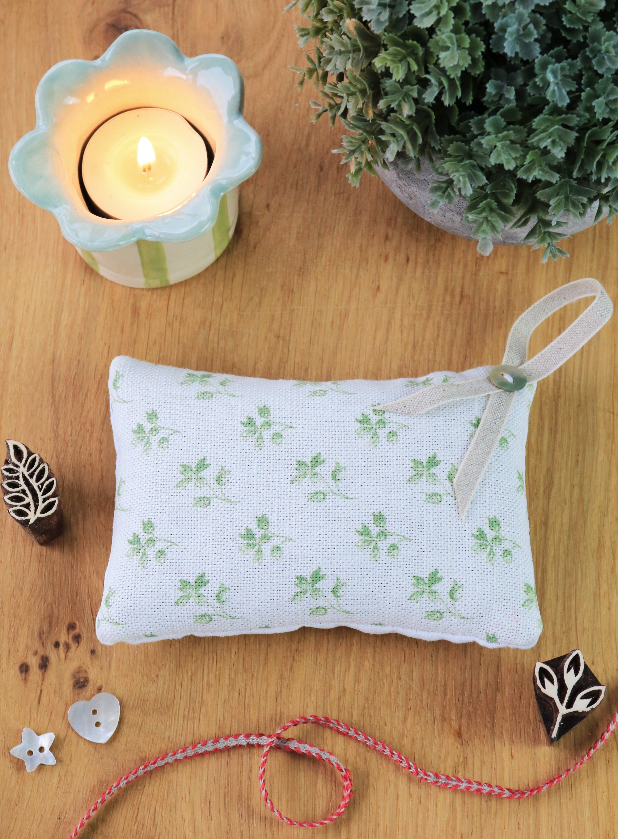 This exquisite little rectangular organic lavender sachet has been beautifully hand sewn, filled and block printed for us in Wiltshire. Each sachet is entirely unique and makes a perfect gift. The vintage linen sachet shown here has been printed with a lovely country pheasant design. The reverse is finished in our Ava fabric in orchard green. Presented in a stylish navy gift box too.