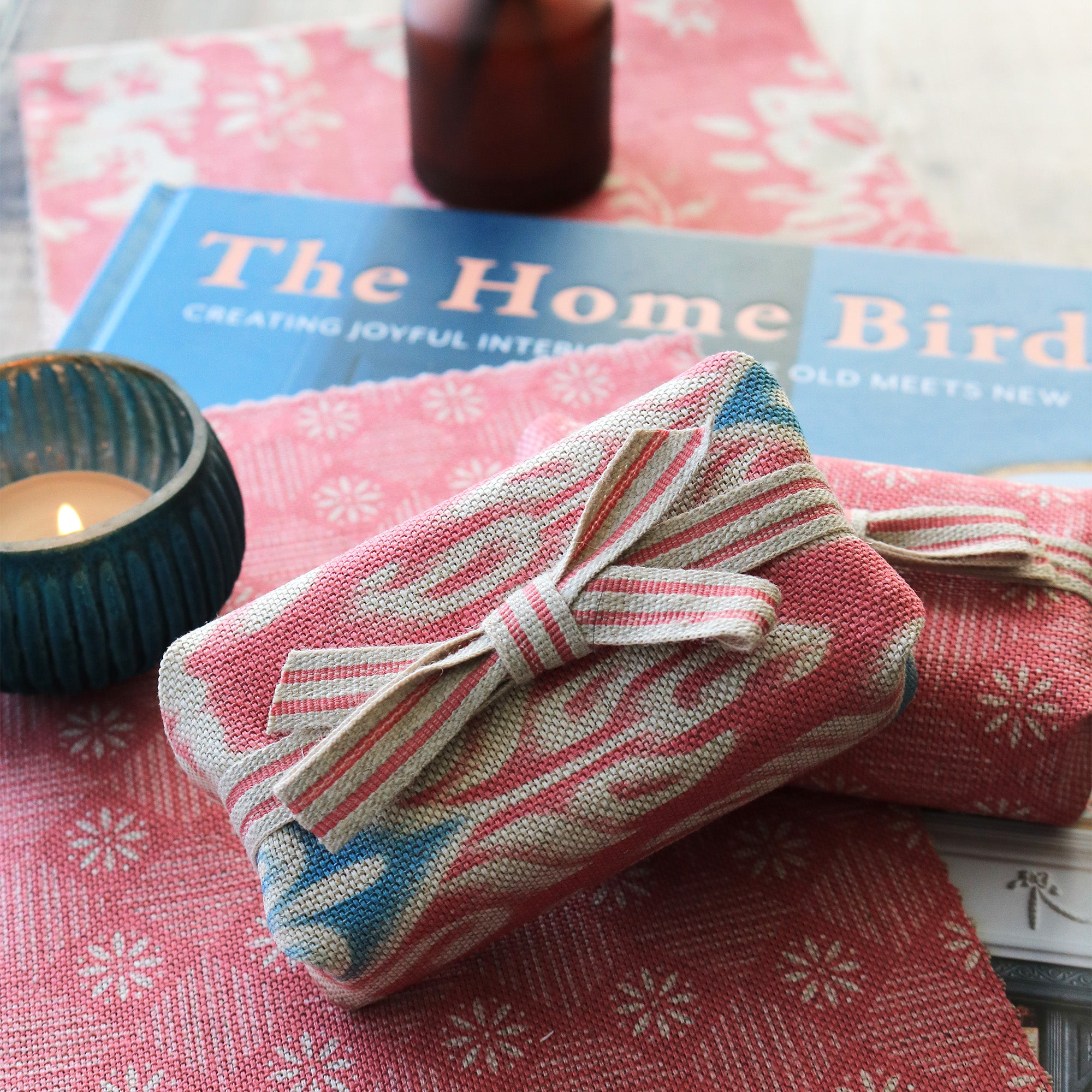 Delight in this elegant Marseille French soap, wrapped in charming Zamira Raspberry & Teal fabric and tied with a stylish pink linen ribbon. Perfect as a thoughtful gift for someone special. Made using a traditional Marseilles recipe and infused with natural essences, this luxurious soap features a Rose Petal exfoliate scent that brings the genuine fragrance of the South of France straight to your skincare routine.