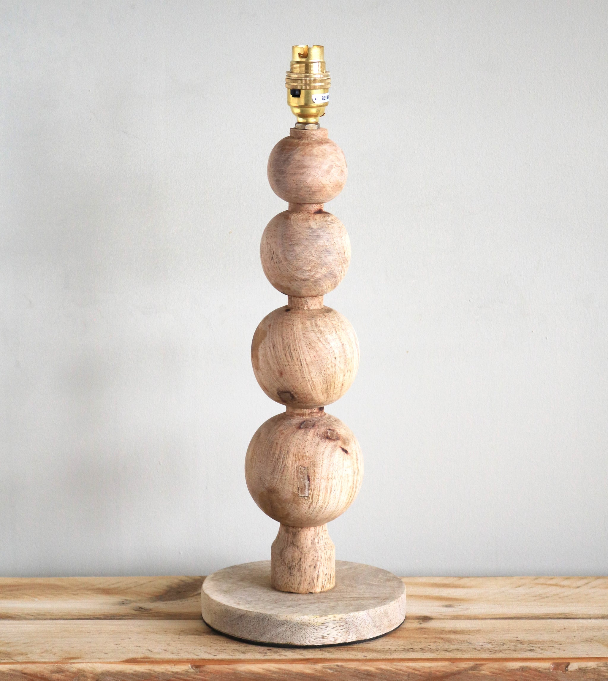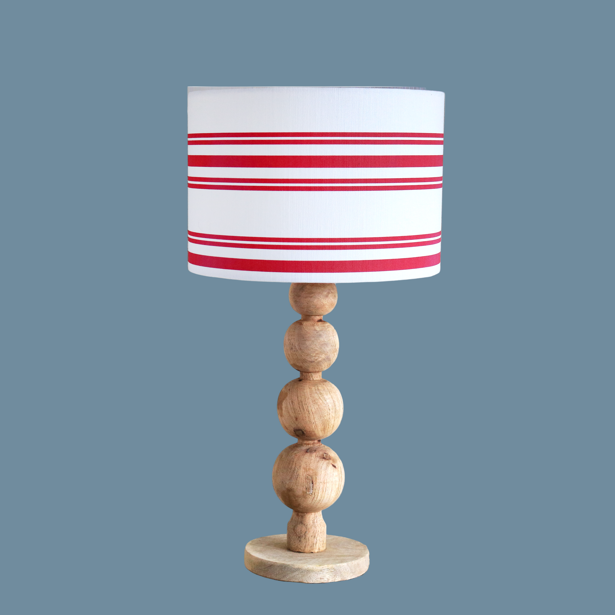 This lovely carved mango wood lamp base teams perfectly with our hand made shades to add a beautiful rustic style to your home with a slightly more contemporary edge too. Shown here with Dorset Stripe raspberry French drum shade.