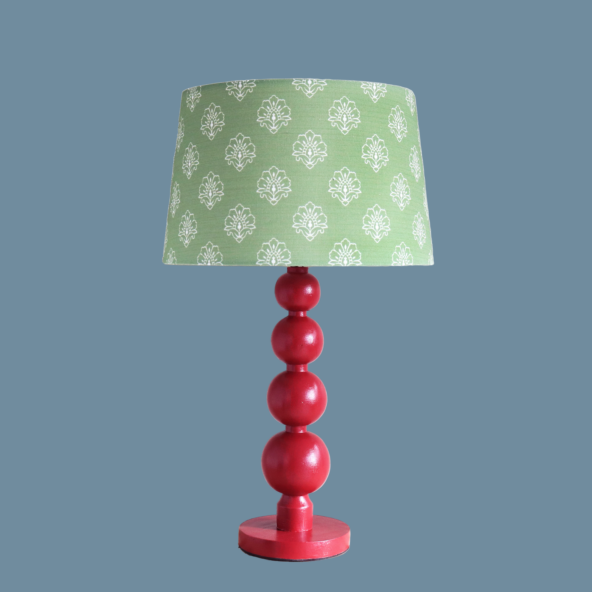 These stunning hand painted lamp bases will definitely add a glorious pop of colour to your room. Team with one of our hand made shades for the perfect accent lighting for your home. Shown here with Jhansi Orchard French drum shade.